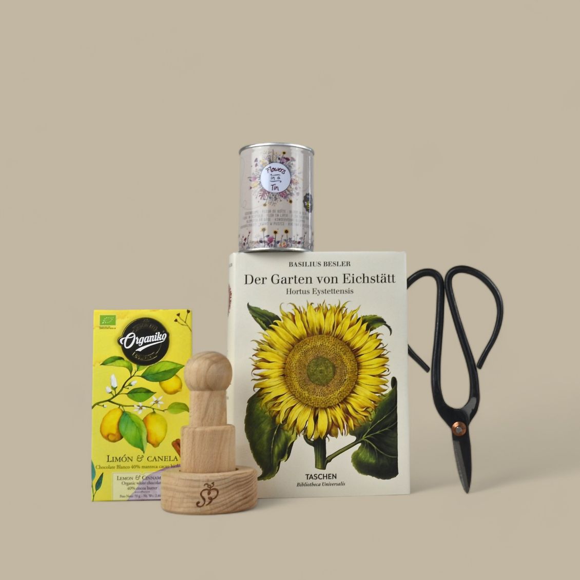 Jetzt ansehenEin blühendes Geschenk für Gartenfreunde: Mit Papiertopf-Presse, Bonsaischere, dem Buch Der Garten von Eichstätt und einer bunten Blumenwiese steckt dieses Set voller grüner Inspiration.