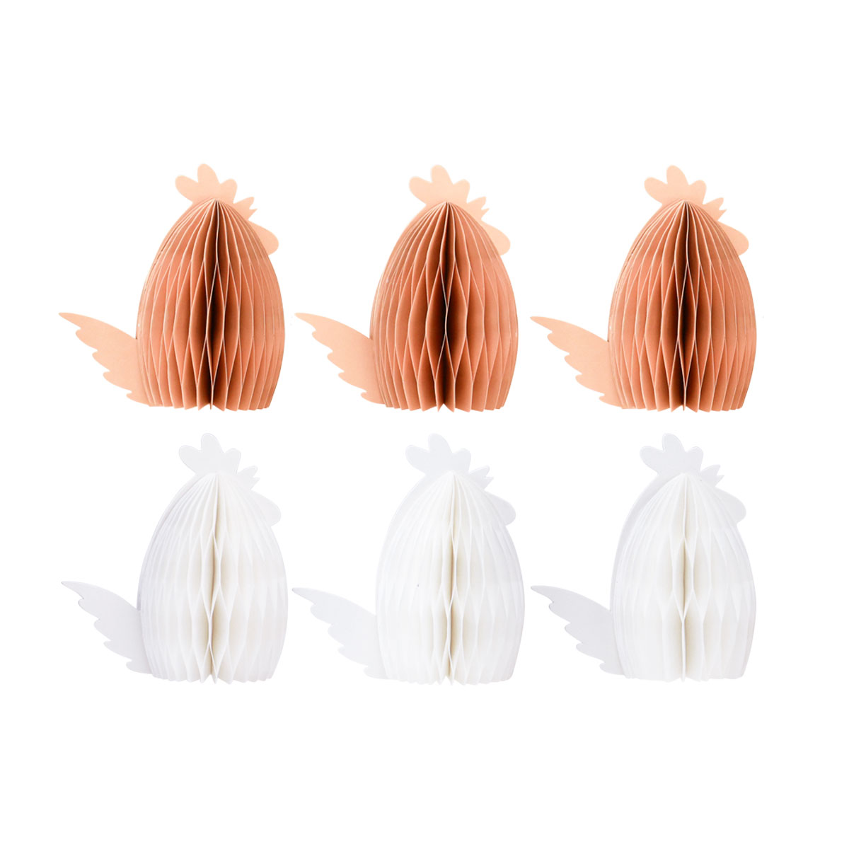 Mit diesen Deko-Hühnern wird Ihre Tischdeko gleich viel österlicher. Die Deko-Hähne aus Wabenpapier haben sich ordentlich aufgeplustert, um ja nicht übersehen zu werden.