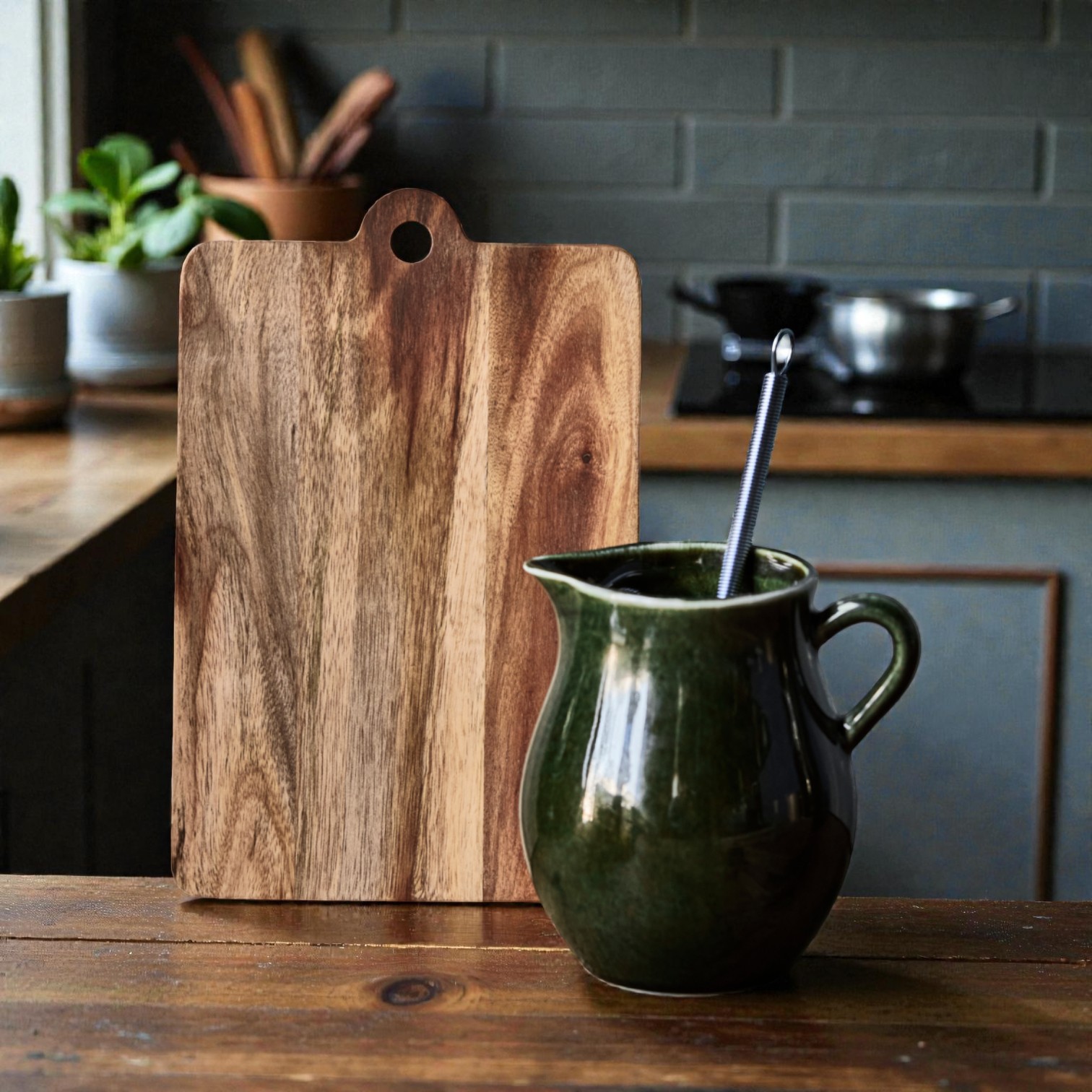 Dieses Schneide- und Servierbrettern verwandelt Ihre Küche in einen stilvollen und praktischen Bereich. Gefertigt aus Akazienholz, beeindrucken die Bretter durch ihre Haltbarkeit und die natürliche Maserung. Verwenden Sie sie, um Ihre Kochkunst zu präsentieren oder um Gäste mit einem eleganten Serviererlebnis zu beeindrucken.