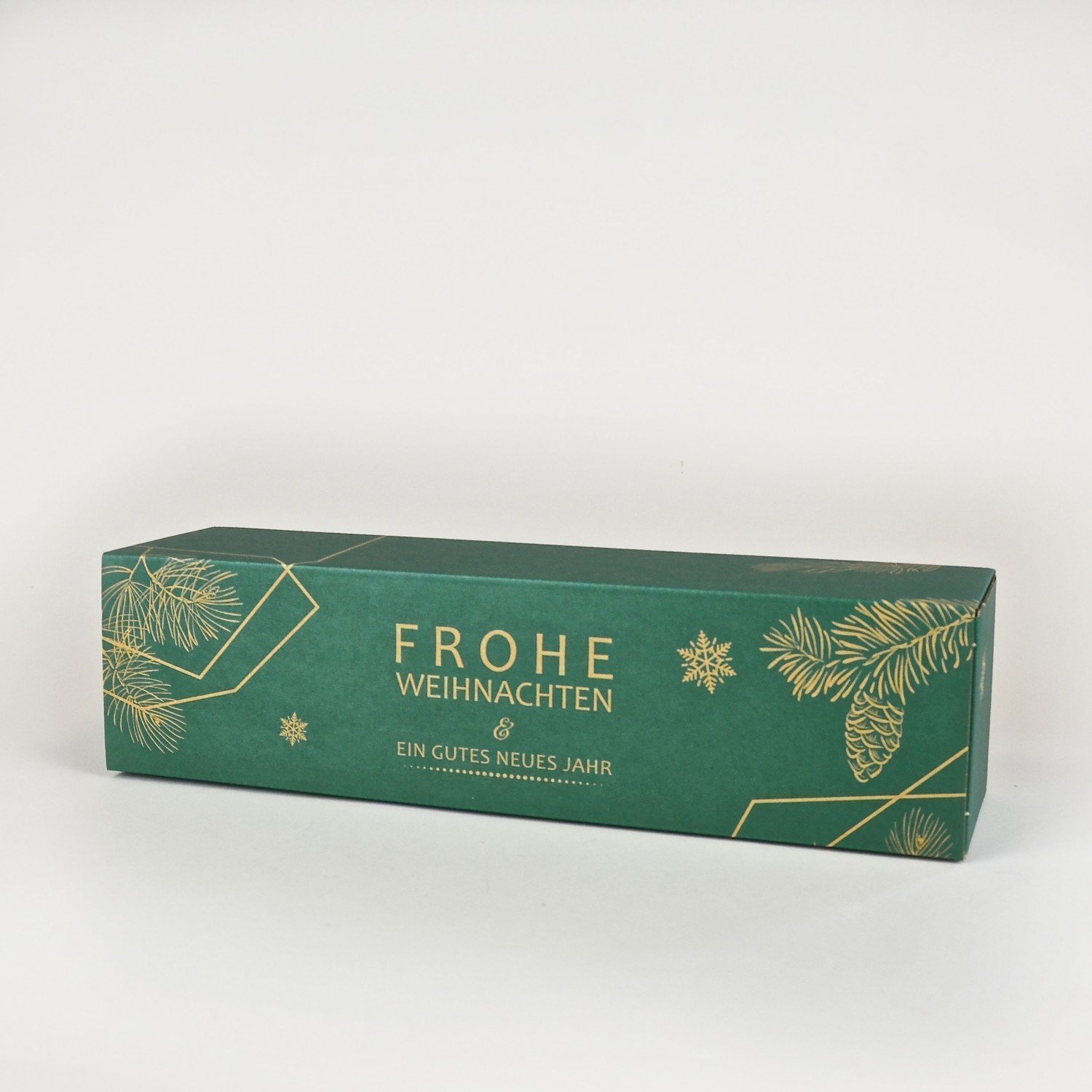Diese Verpackung unterstreicht besonders die Nachhaltigkeit unserer Produkte. Der Präsentkarton „Natura Tannengrün“ ist eine Verpackung auf Basis der Natura-Serie mit einem stimmungsvollen Druck. Das Motiv mit Tannenzweigen und Schriftzug wird durch die Aussparung der grünen Farbe erzeugt. Die Innenseite sowie die seperate Einlage sind ebenfalls naturbraun!
