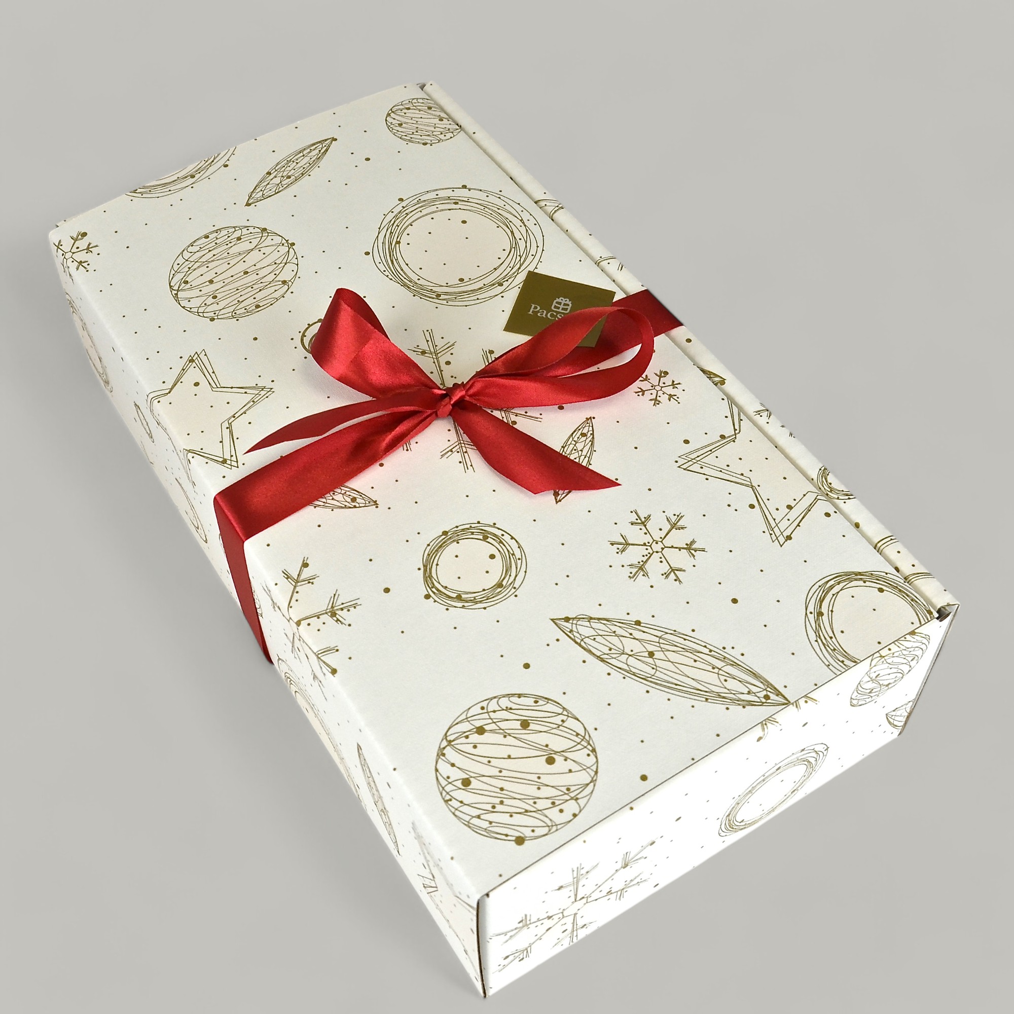Unser schöner Präsentkarton "Christmas Bianco" hat eine anspruchsvolle Oberfläche mit Strukturprägung und Weihnachtsmotiv.
