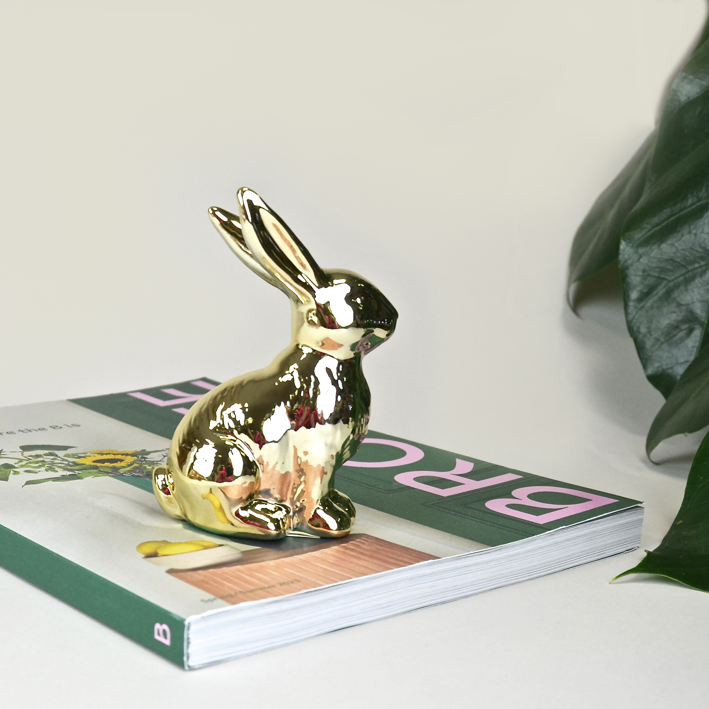 Süßer Deko-Hase sitzend aus Keramik in Gold